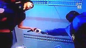 フェラチオと手コキのシーン!捜査官が巨乳を揺らしながらバックで!!